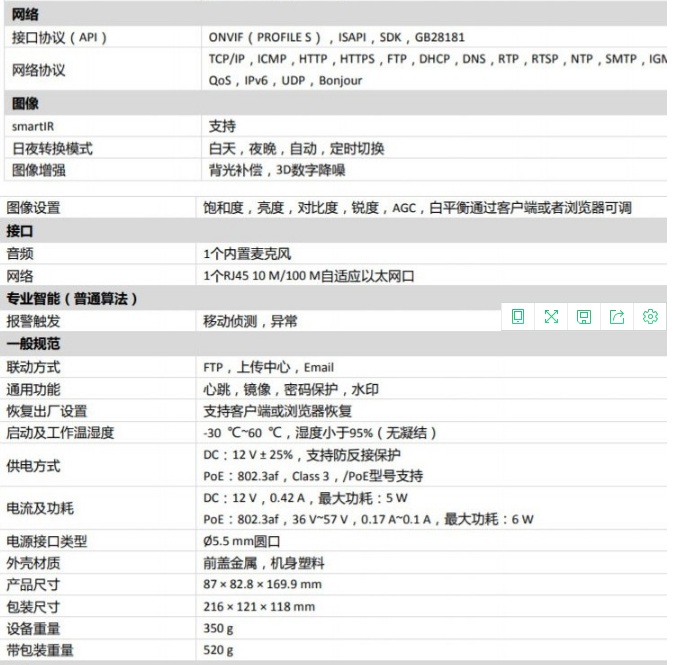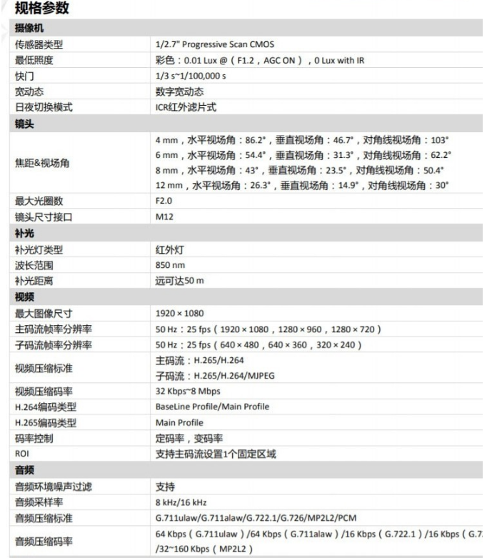 ??低暎℉IKVISION)DS-IPC-B12HV2-IA 監(jiān)控攝像機 POE供電/ 4MM焦距
