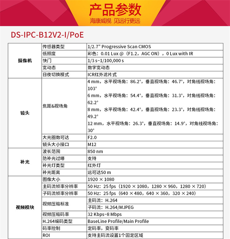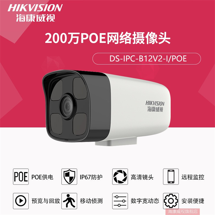 海康威視 B12V2-I (200萬(wàn))視頻監(jiān)控設(shè)備 ??低?00萬(wàn)網(wǎng)絡(luò)監(jiān)控?cái)z像頭連錄像機(jī)紅外50米帶POE 4MM焦距