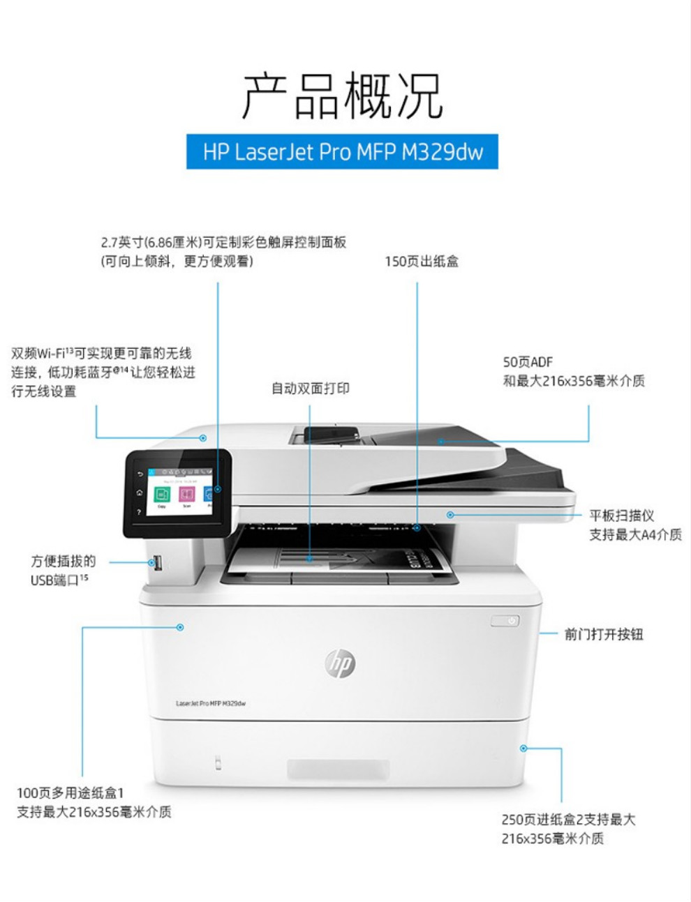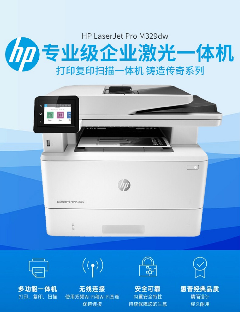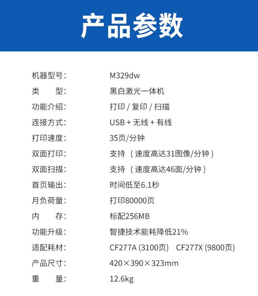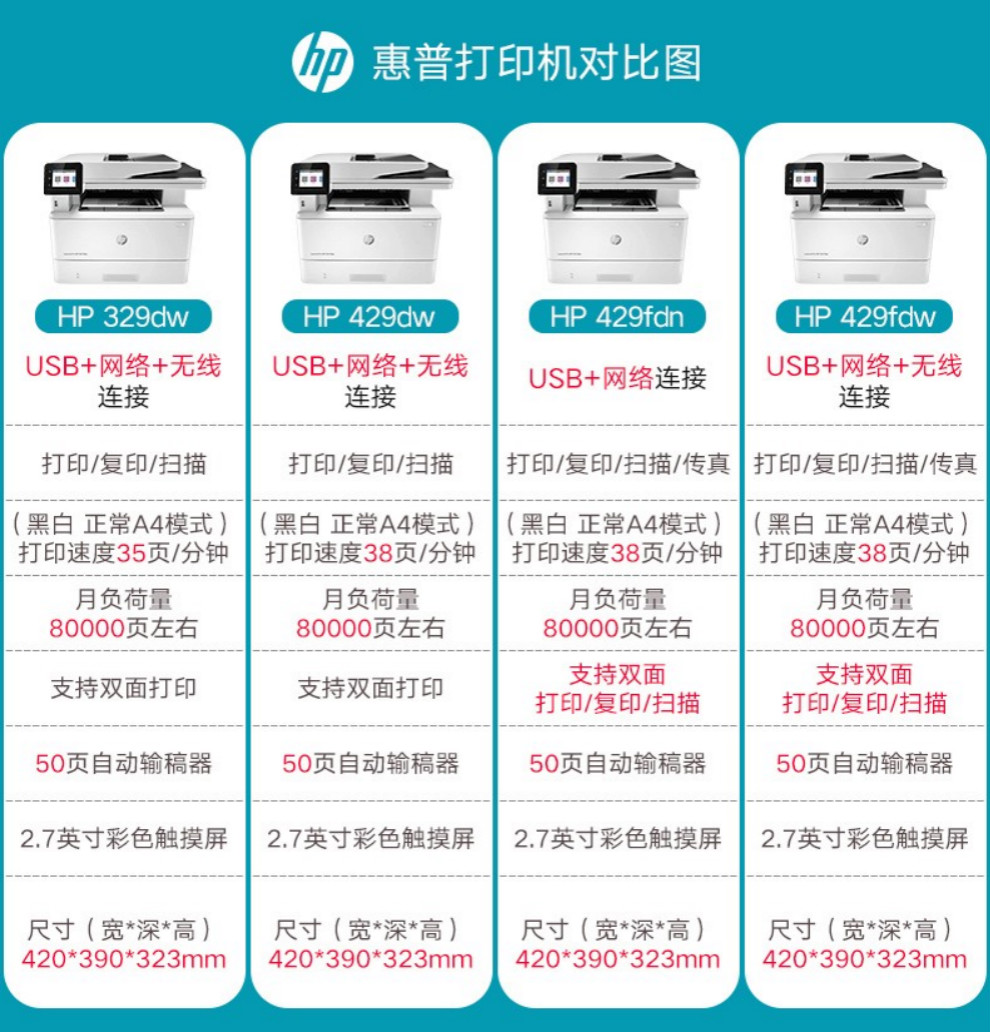 惠普(HP)黑白激光一體機M429dw/fdw 329dw打印機多功能自動雙面復(fù)印掃描無線 M429fdw【四合一+自動雙面打印+無線連接】 官方標配