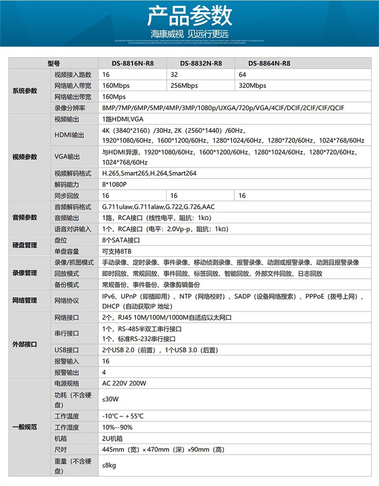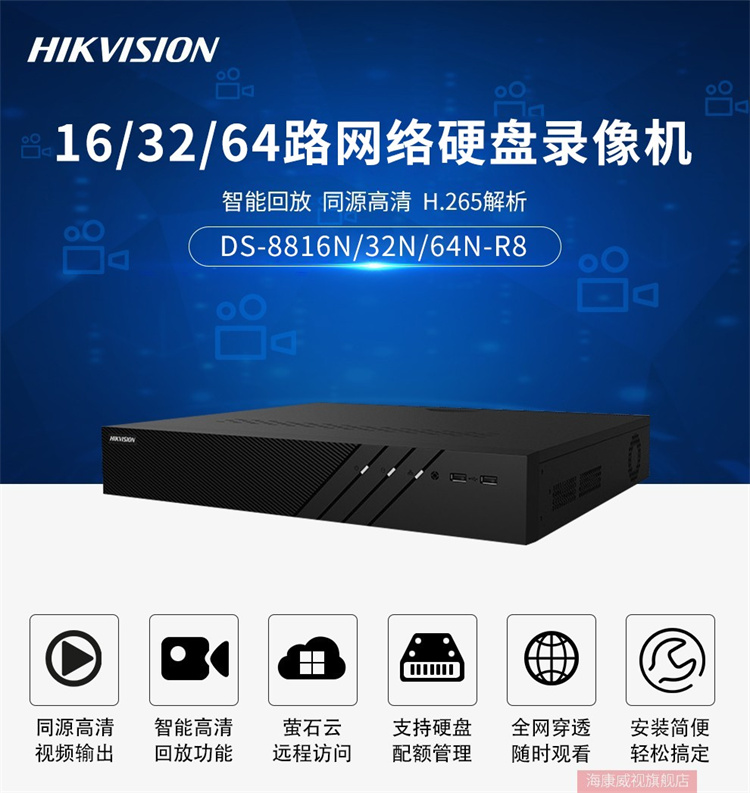 海康威視 DS-8864N-R8 (64路/8盤位)??低暰W(wǎng)絡(luò)監(jiān)控硬盤錄像機(jī)NVR主機(jī)8盤位支持4K高清多路回放