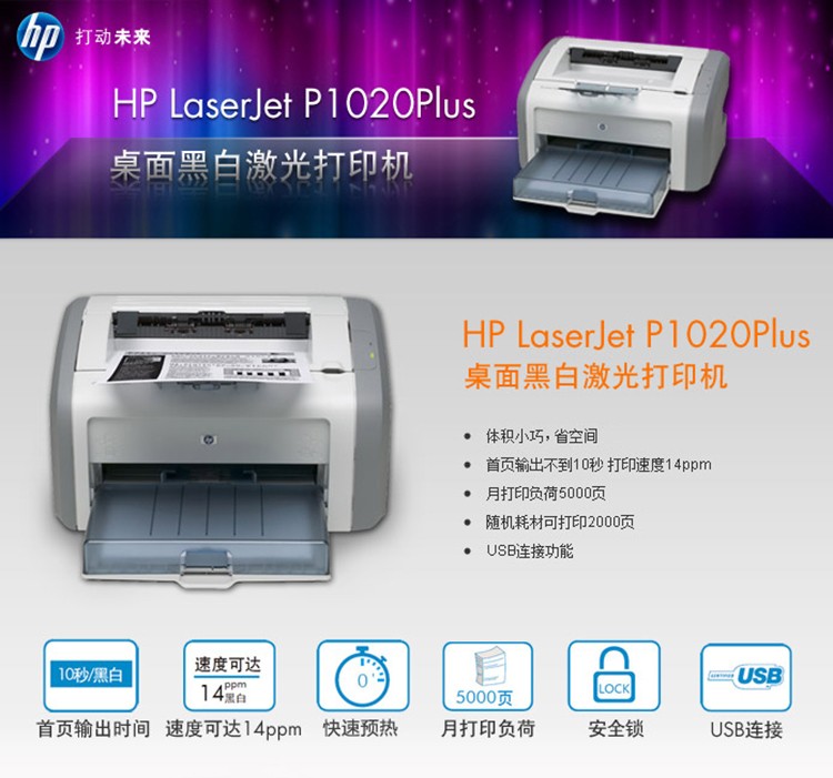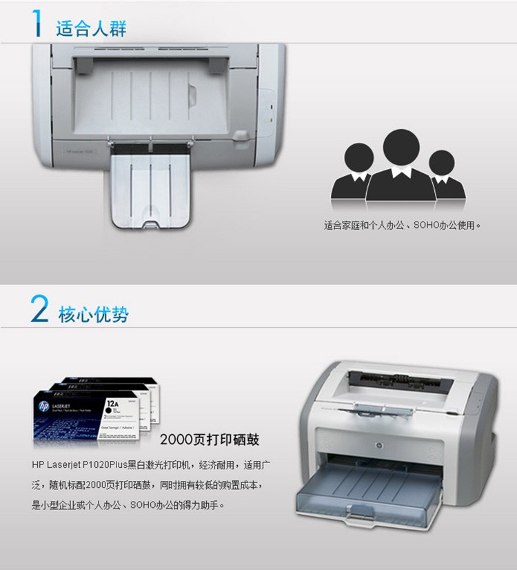 惠普(HP)黑白激光辦公打印機(jī)1020plus