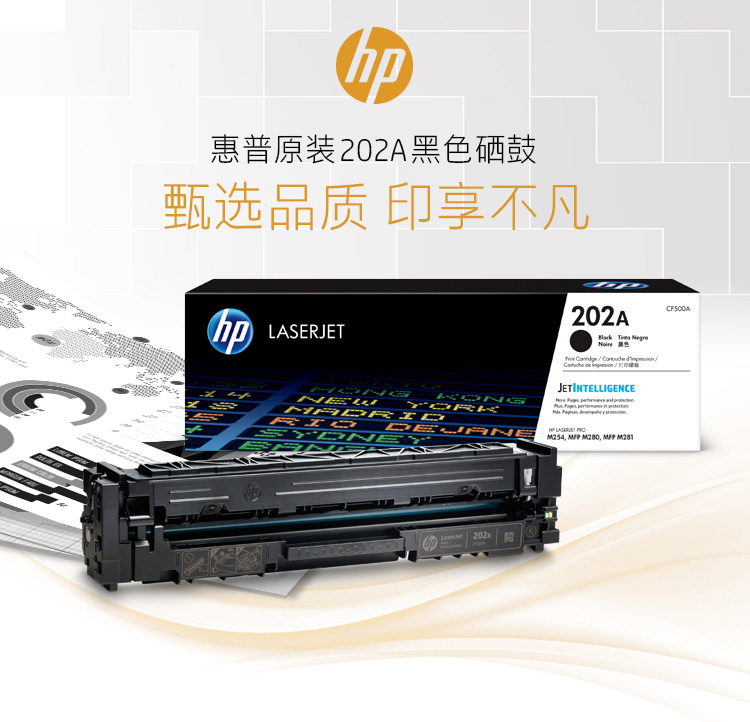 惠普(HP)CF500A 202A原裝黑色硒鼓 適用hp m281fdw 254dw 254NW 280NW 281FDN 打印機硒鼓