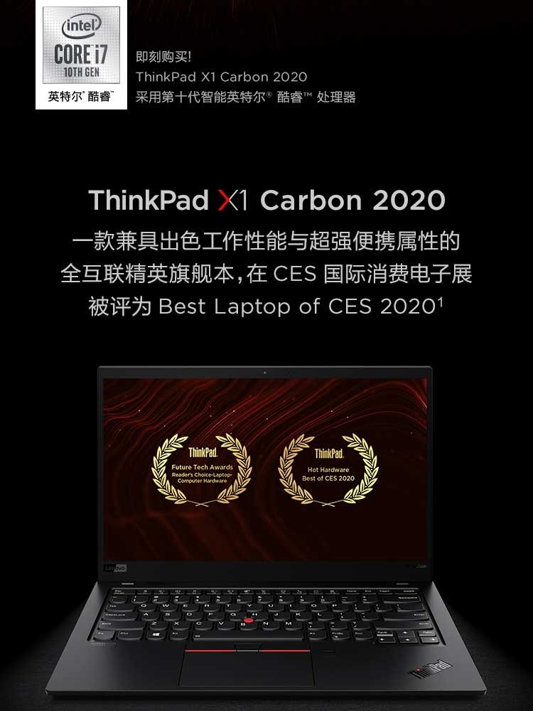 聯(lián)想ThinkPad X1 Carbon 2020英特爾酷睿i5 14英寸輕薄筆記本電腦 i5-10210U 8GB 512G(36CD) FHD 背光鍵盤(pán) Win10 office