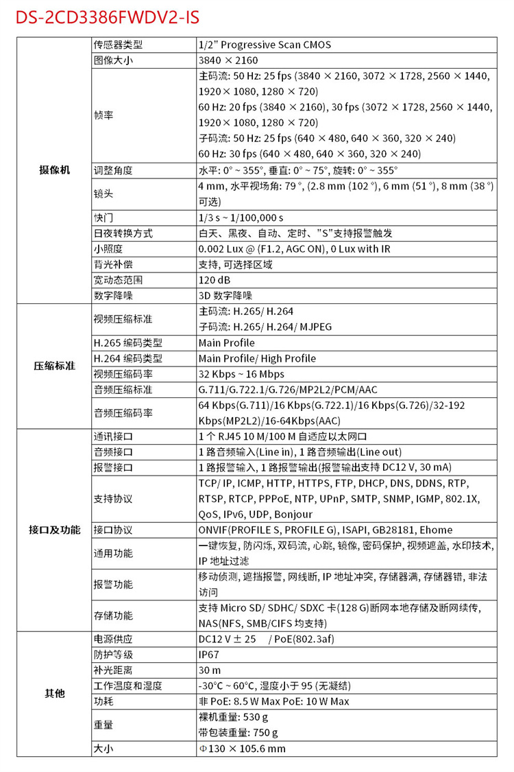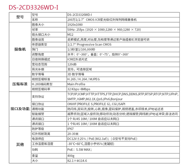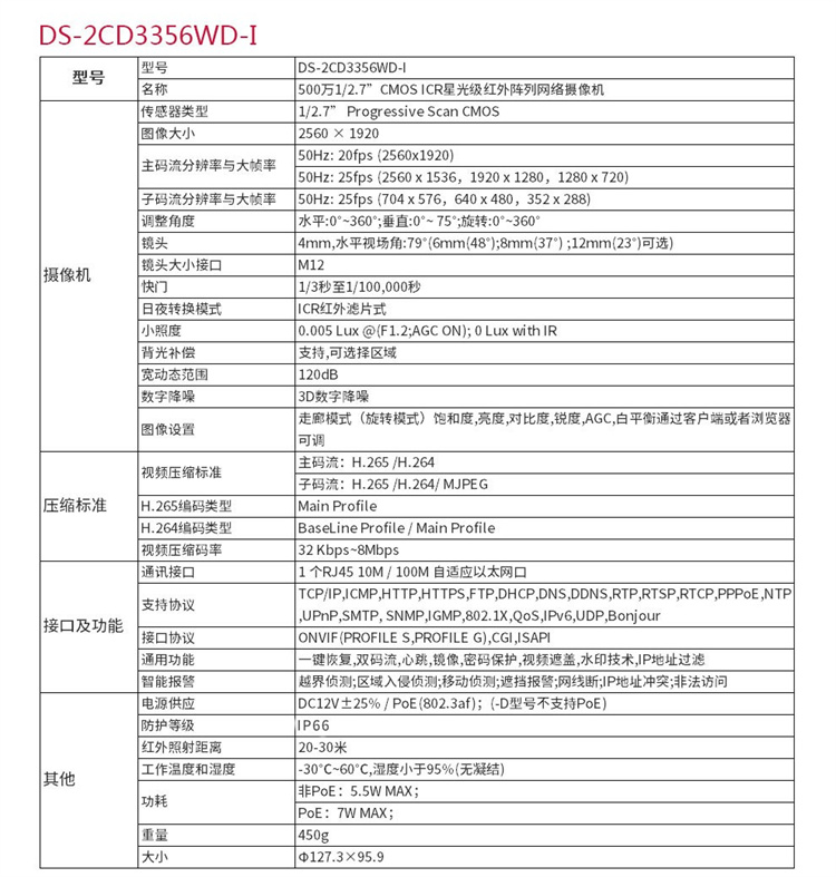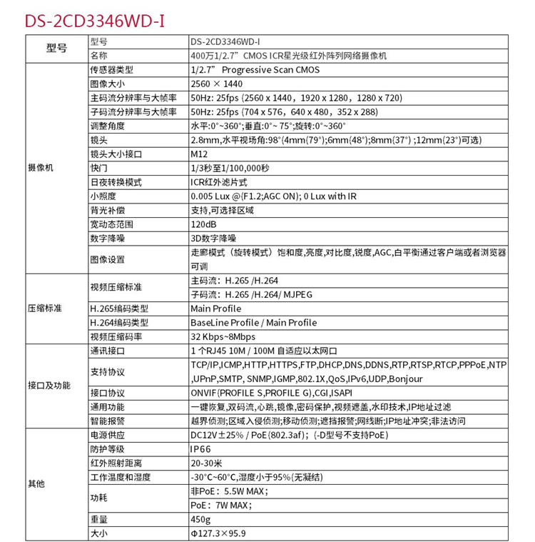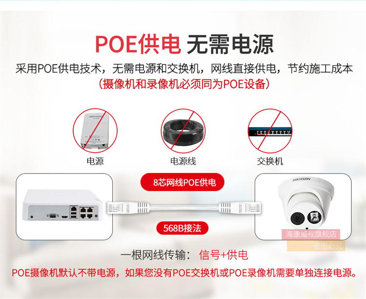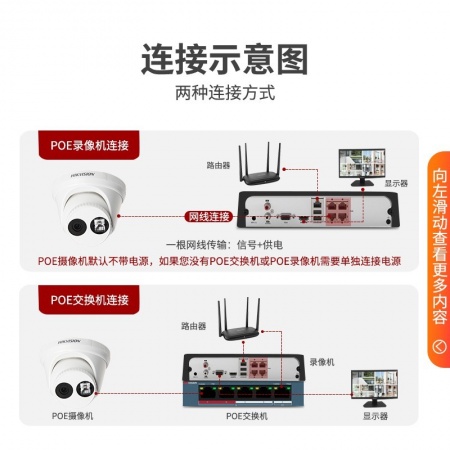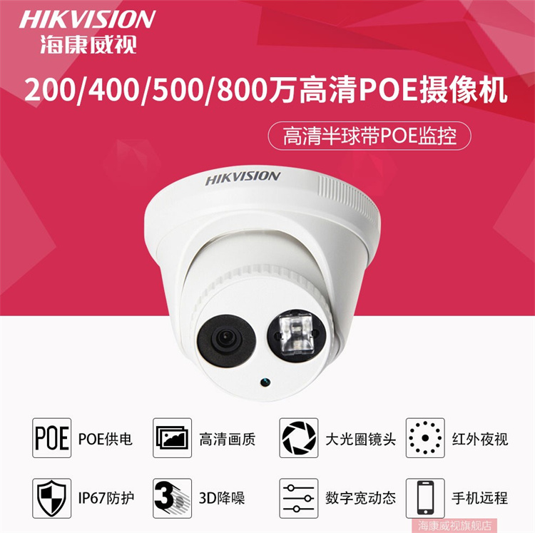 ??低?DS-2CD3346WD-I (400萬(wàn))海康威視星光級(jí)搭配監(jiān)控設(shè)備套裝高清半球帶POE6MM焦距