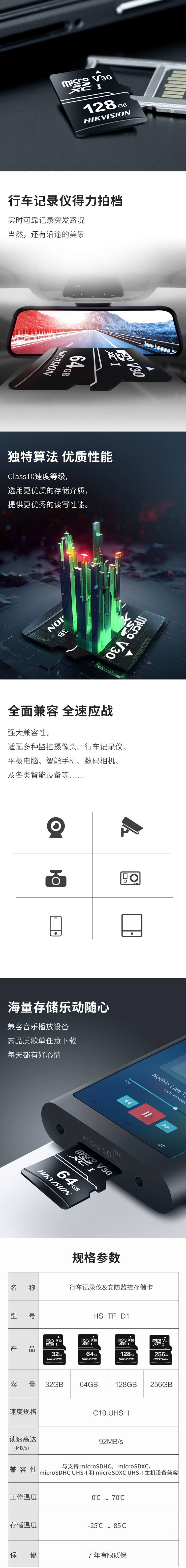 ??低?HIKVISION HS-TF-D1 U盤/存儲卡 TF閃存卡 128GB C10 V30 讀速高達(dá)92MB/s 適用行車記錄儀 安防監(jiān)控?cái)z像頭