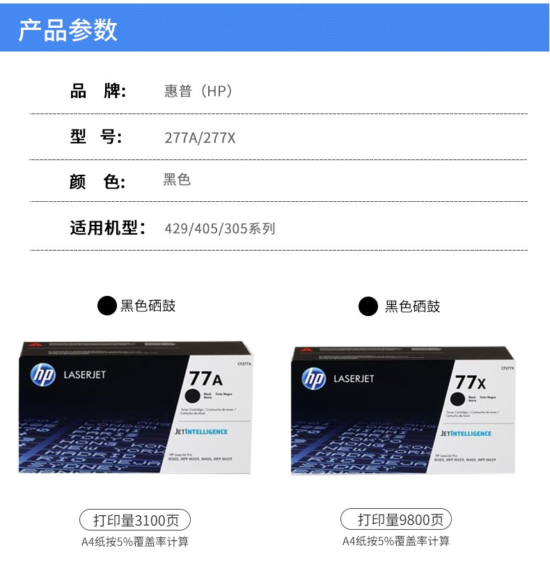惠普hp cf277X硒鼓適用于305 429fdw 329 429dw 405d DW CF277X黑色大容量(約9800頁)
